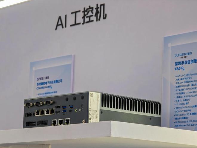 现场英特尔也和众多合作伙伴一起,展示了AI是如何助力企业从传统工业转向数字化,例如在展会现场,我们发现英特尔展示了众多的工业AI终端产品,例如AI工控机,边缘大模型一体机以及具身智能控制器,还包括各种各样的边缘大模型一体机,机器视觉解决方案等,这些产品采用了英特尔酷睿Ultra处理器,拥有数十乃至上百TOPS的AI算力,并且也有企业利用这些产品实现了不同领域的先进解决方案,能够让企业快速地实现数字化转型。