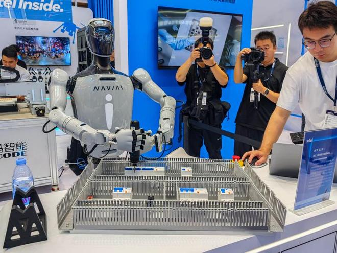 像是浙江人形机器人创新中心也基于英特尔酷睿处理器打造了领航者2号NAVIAI人形机器人,实现可泛化高精准视觉伺服以及行为规划,使其在工业场景中执行复杂任务,从而完成人机交互以及辅助等各种任务,推动机器人朝着高层次的智慧形态不断发展。
