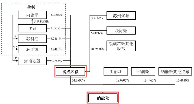 锐成芯微实际控制人为向建军,持股33.3985%。向建军出生于1977年,兰州人,毕业于兰州大学半导体器件与微电子学专业,本科学历。
