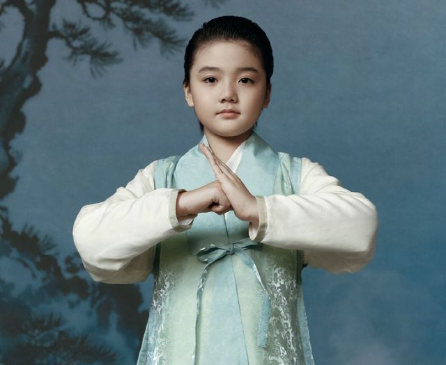 照片里的吴虑,一会儿穿着青色的传统长袍,手里攥着小折扇,虽然一开始有点紧张,手指紧紧抠着衣角,但眼神里满是好奇;一会儿又换上白色的运动服,踩着小白鞋,对着镜头比耶,活泼劲儿藏都藏不住。