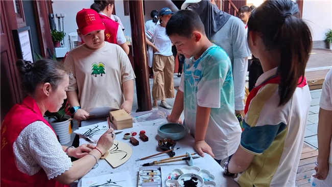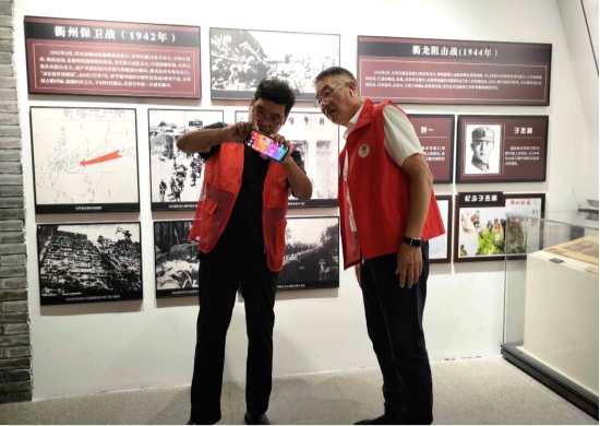 不止于打卡拍摄,志愿服务点为游客们带来了内容丰富、独具特色的文化公益服务。以汪建为代表的讲解志愿者,为游客绘声绘色地讲述细菌战的历史,让红色记忆更易感知;以高明玲为代表的绘扇志愿者,挥毫泼墨间,在扇面绘上水墨丹青,另一面写下“衢州有礼”“危险高兴宁着尼”等富有地方特色的寄语,在历史答题游戏中送给游客作为礼物。