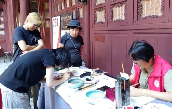考虑到手绘耗时,志愿者们每次都会提前备好10把完成正面绘画的扇面,背面留白供现场题字,游客既能请志愿者书写,也能亲手提笔留念,既保证了效率,又增强了互动体验。
